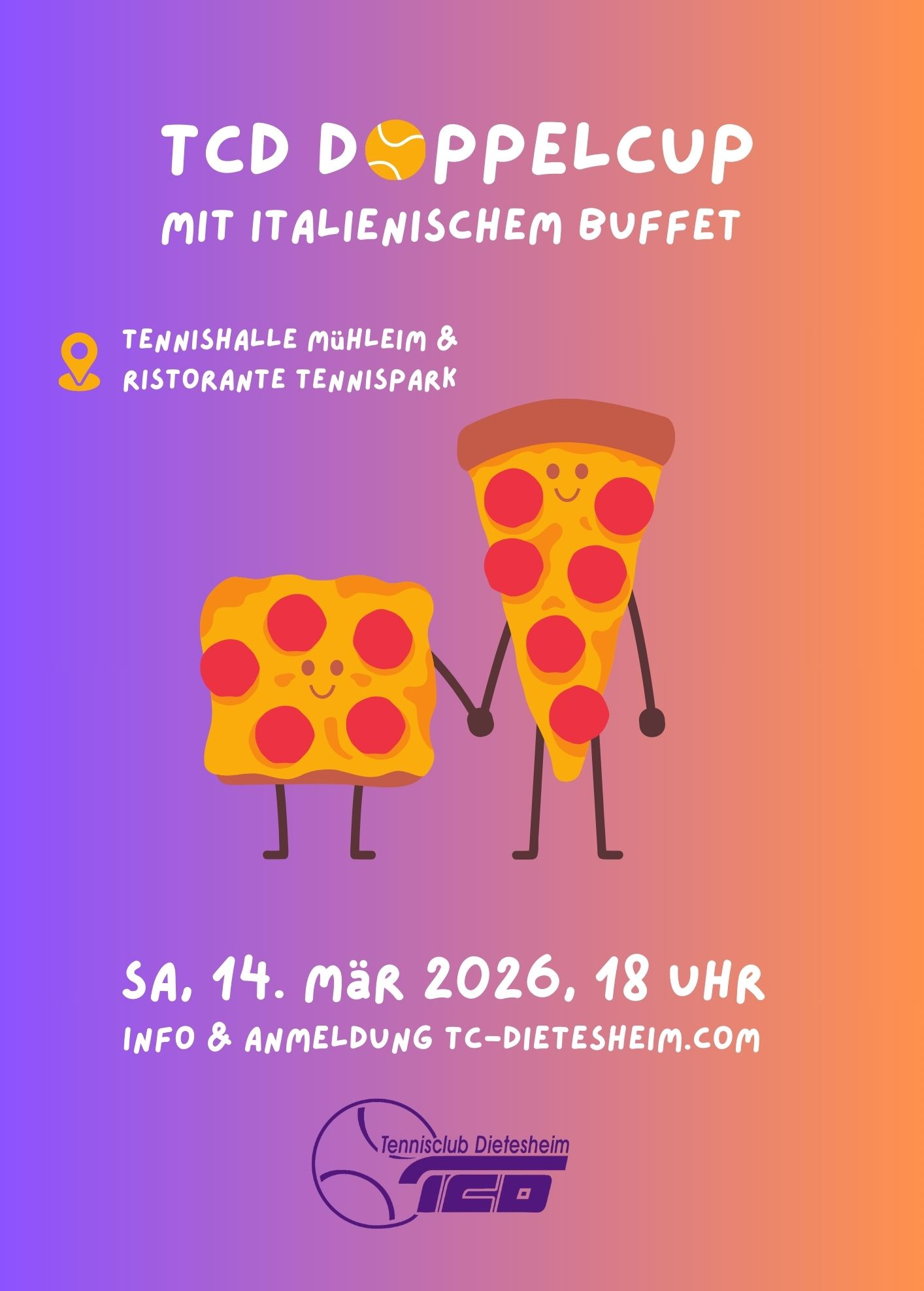 Sa, 14. Mrz 2026, 18-22 Uhr; Tennishalle / Ristorante Tennispark